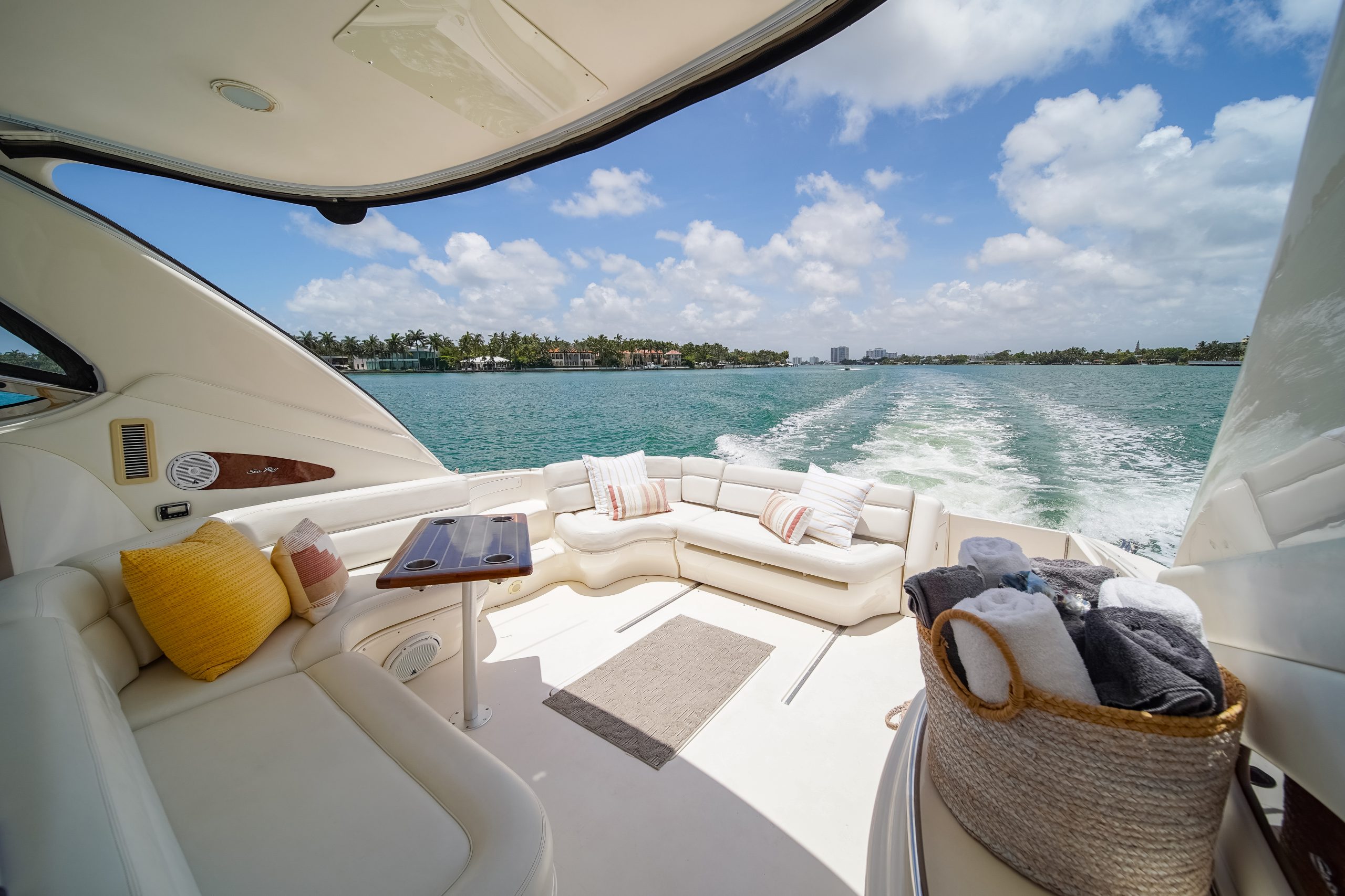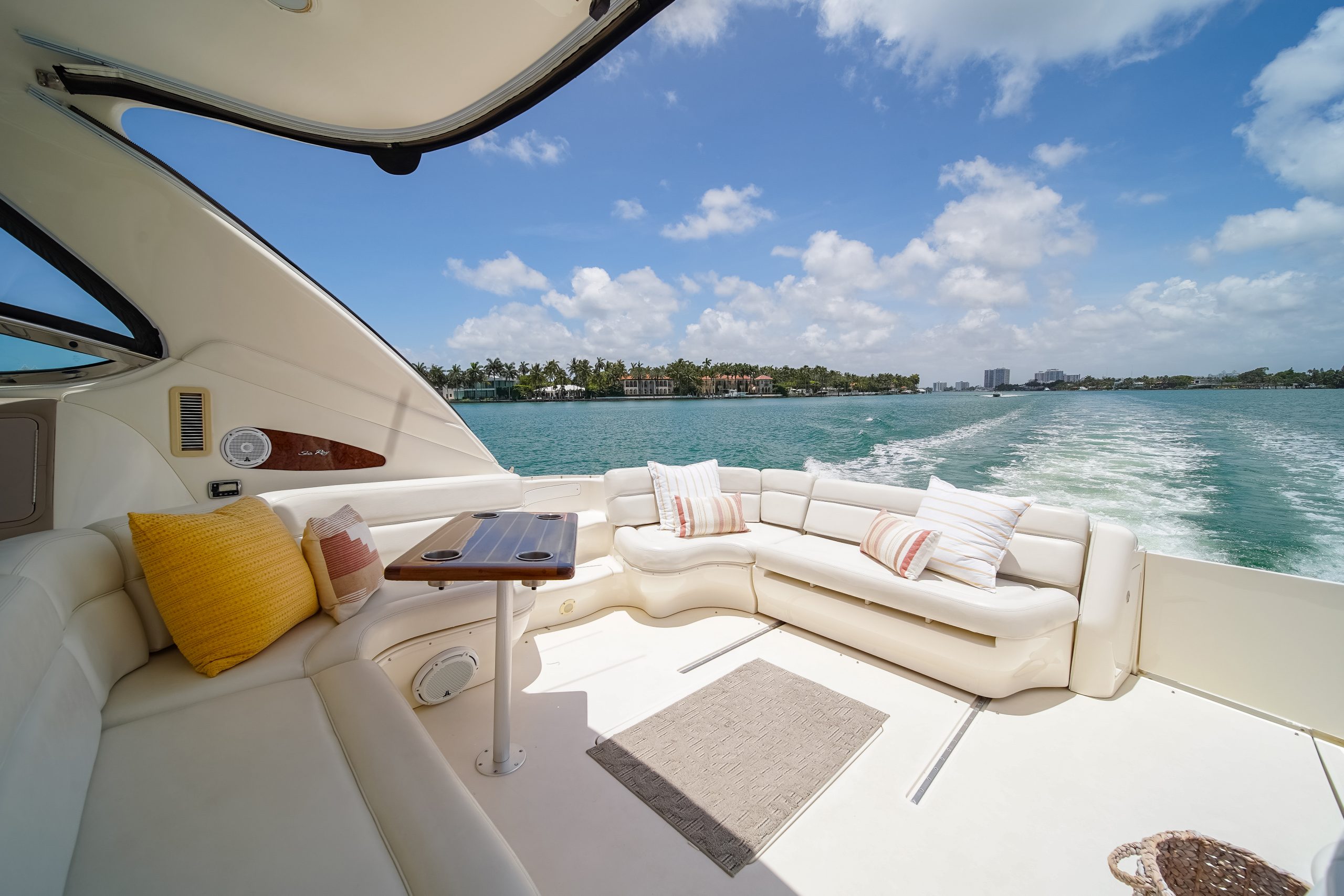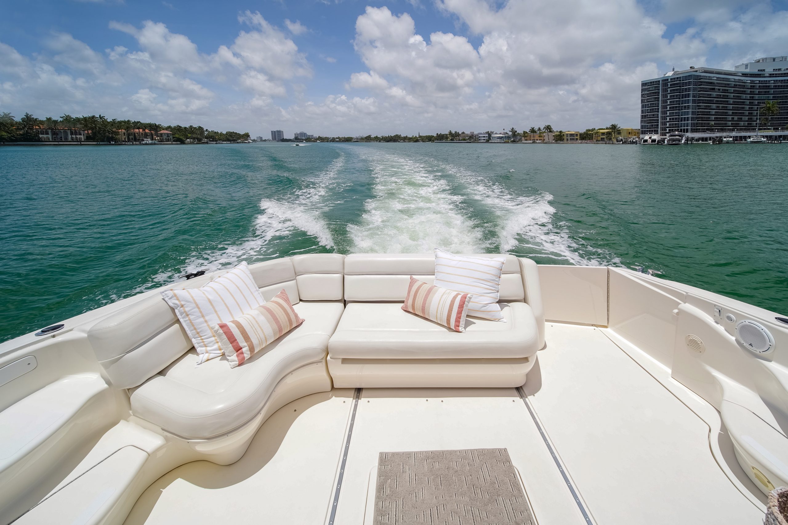 The yacht is perfect for a day charter having expansive seating areas to relax on and a new amazing sound system this yacht is perfect to cruise the watery of south Florida in join our captain and crew as they guide you on an exciting and luxurious adventure on the waters of Miami and south beach.